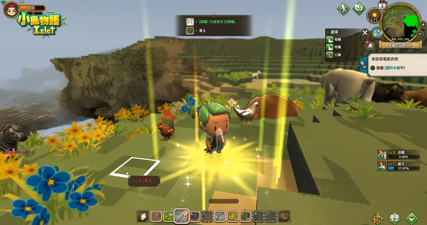 不過,因為模擬著真實世界,《小島物語》的生態系統,如同真實環境的食物鏈,動植物間維持著絕妙的平衡,一旦玩家過度獲取某種資源,就會造成環境失衡,讓世界逐漸變調,有些動植物或許會因此默默消失不見,玩家也有可能因此喪失某種資源,影響遊戲進行,因此在採集、狩獵資源的同時,也要考慮生態消長,才不會顧此失彼。