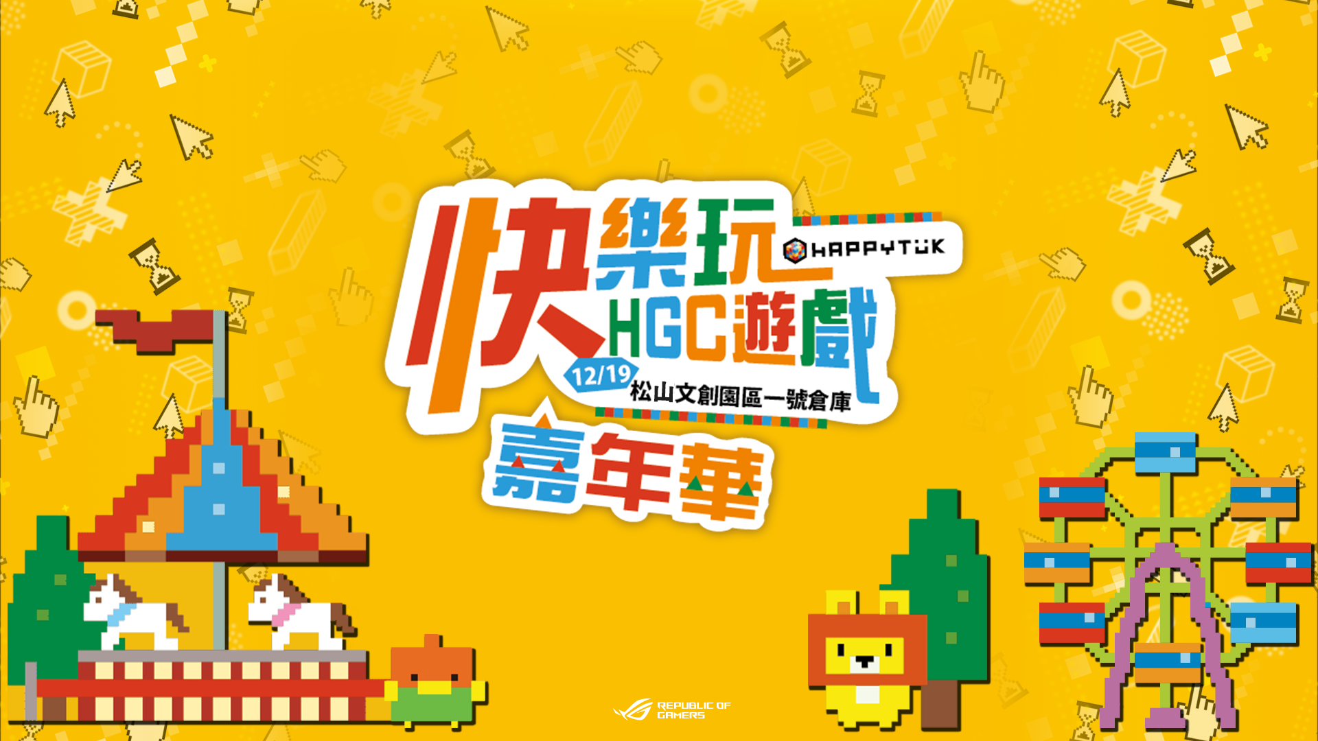 由樂意傳播主辦,ROG 玩家共和國贊助的《快樂玩嘉年華》即將於 12 月 19 號展開,本次盛大舉辦的派對活動是為了回饋眾多玩家,希望能透過現場活動讓玩家們對於喜愛的遊戲有更美好的紀念,並且發掘更多遊戲樂趣,來到現場的玩家們還能透過各類趣味小遊戲獲得各種虛寶道具、限量周邊等多項獎勵。
