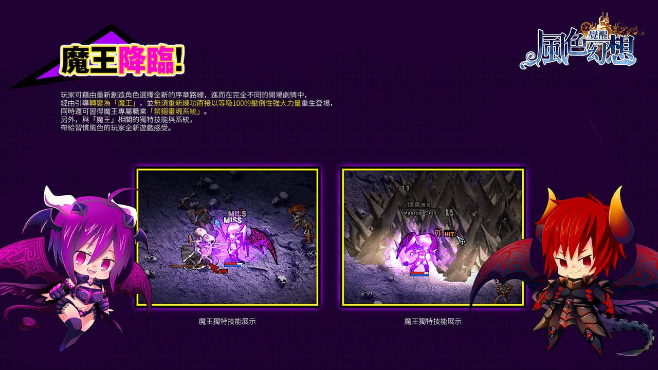 由樂意傳播代理的《風色幻想:覺醒 Online》今(24)日全新改版,推出新職業-「魔王」,並開啟更多遊戲內容,像是多種利用寵物能力提升方法和新地圖的開放,讓玩家探索更多不同的遊玩體驗。