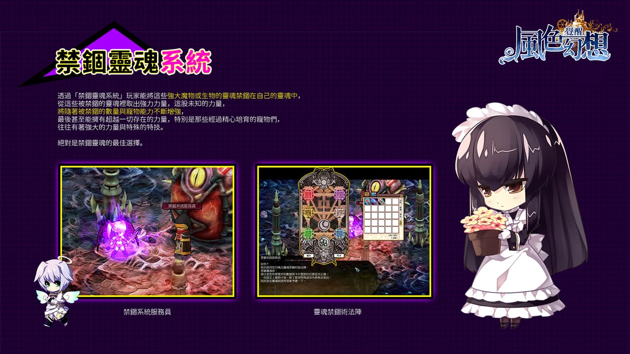 除了獨一無二的故事和技能外,身為「魔王」的玩家還可使用魔王職業專屬的「禁錮靈魂系統」,透過此系統玩家可將被捕獲的魔物或是從屬於自己的生物靈魂禁錮在自己的靈魂之中,並從被禁錮的靈魂中汲取神秘力量來轉換成己身能力,隨著被禁錮的數量和寵物能力不斷增強,玩家可獲得的能力更是不可預知!額外一提,等級越高能力越強且經過精心培育的寵物們所擁有的強大力量和特殊技能,是禁錮靈魂時的最佳選擇!
