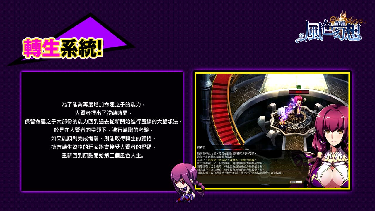 害怕曾經的努力付諸東流嗎?不必擔心!透過轉生系統,命運之子的努力成果大部分將會被保留,無論是魔物圖鑑的討伐數還是曾經使用潛能藥水所增加的能力等,都可以在轉生後全數保留,並依據轉生時的等級額外獲得獎勵點數,進而得到更多重置時分配能力的點數。