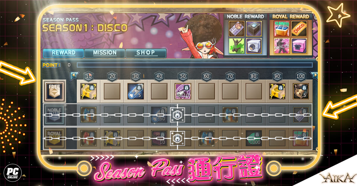 官方表示,本次《AIKA Online》開放了全新的「通行證」系統,首季的通行證活動將為期 43 天,活動期間內,玩家可通過完成「通行證」的專屬任務,來取得積分點數,並在達成指定分數後,即可獲得「通行證隨機寶箱」、「稀世魔力晶珠隨機寶箱[武器]」等各式獎勵。
