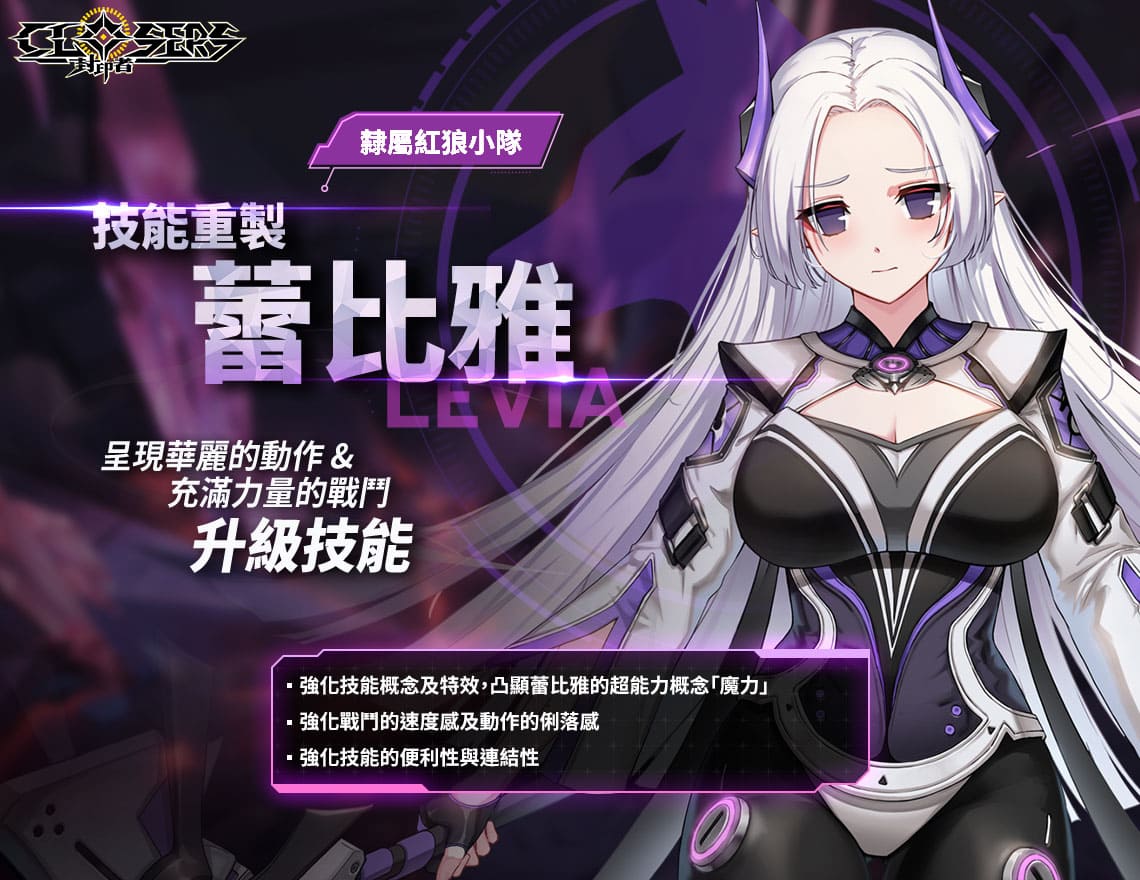 蕾比雅技能重製與系列活動現已上線,更多遊戲及見面會活動資訊請參考《封印者:CLOSERS》官方網站及粉絲專頁。